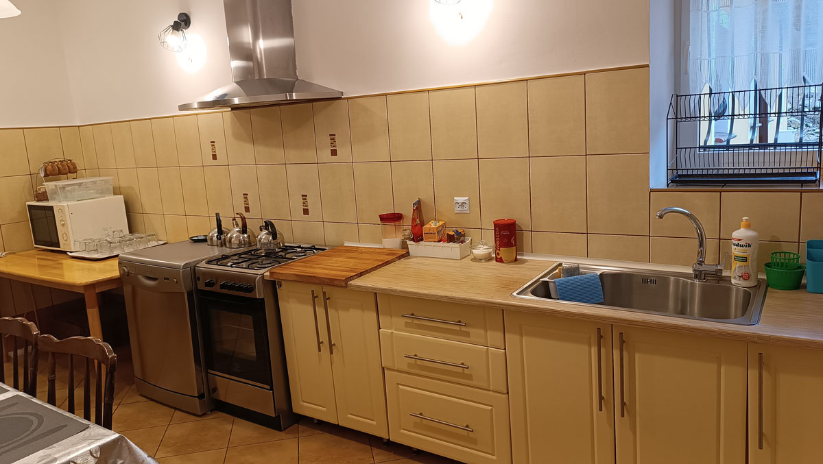- w pełni wyposażoną dużą kuchnię